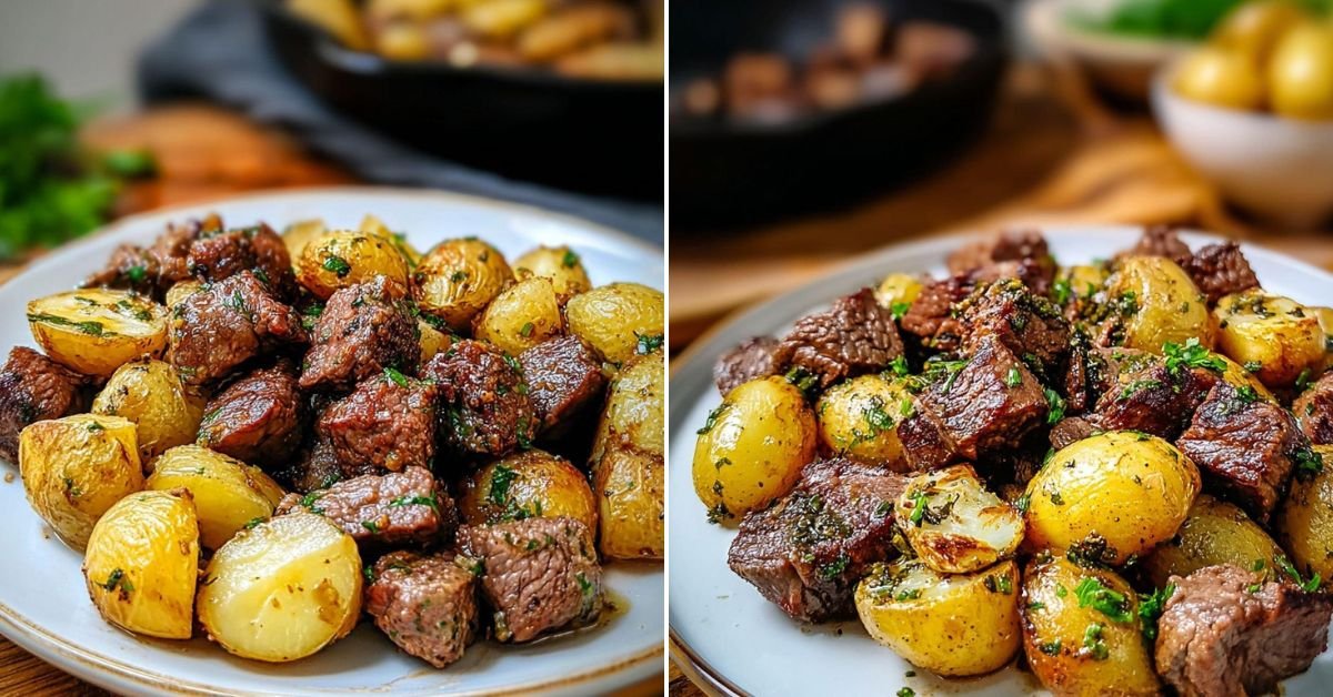 If there’s one thing I don’t mess around with, it’s potatoes. Golden, buttery, slightly crisped-up potatoes that soak up all the herby goodness? Count me in. We’re not making just any potatoes here—we’re turning them into a showstopper. The kind you’d side-eye at a restaurant and whisper, “I could totally make that at home.” And today? You will. This recipe lands somewhere between weeknight comfort and weekend reward. It brings together juicy, pan-seared steak bites—seasoned just right—and pairs them with those irresistible garlic herb potatoes that start in the microwave (bless), then finish in the pan for that savory, slightly crunchy texture we love. The butter? Oh, it’s not shy. It’s got support from rosemary, thyme, and garlic to really bring out the richness of the potatoes. If you’re into Potatoes Recipes Easy, or you’ve ever drooled over Portuguese Potatoes or Peruvian Potatoes on Pinterest, you’re gonna feel right at home. Want Healthy Roasted Potatoes without losing that indulgent touch? Yep, this hits. Ever dreamt of turning those cozy Onion Soup Potatoes into an actual meal? We went there. Add in cast iron potatoes and a hearty recipe with butter? Boom. Dinner just got serious.