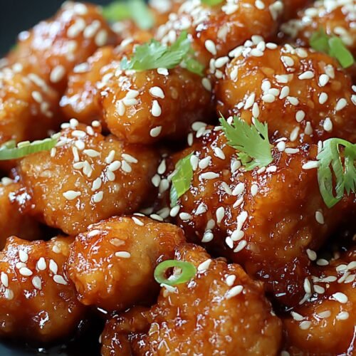 It starts with chicken that’s tossed in a light blend of flour and cornstarch, then baked until it turns golden and crisp. That crispy bite? It comes with no deep-fryer in sight. What seals the deal is the sticky, sweet, salty sesame glaze. It’s the kind that makes you lick the plate. Or at least the fork.