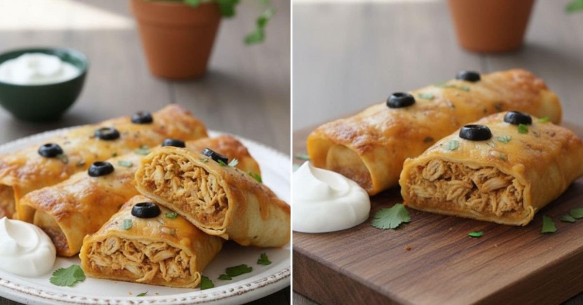 - Once all your little flavor burritos are nestled in, pour the third and final can of enchilada sauce evenly over the top. Be generous! Then, bury them under the remaining mountain of shredded cheese. Scatter the last of the olives over the cheese if you like.