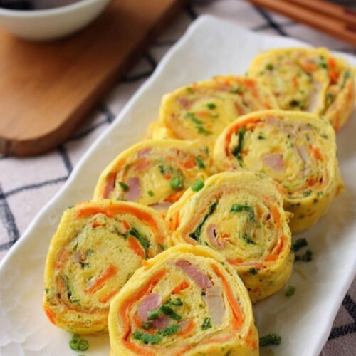 One of my go-to breakfast ideas when time is tight and my stomach is already rumbling is this soft, rolled Korean omelette called Gyeran Mari. It’s a dish I grew up watching my aunt make while she juggled a toddler on her hip and barely looked at the pan. That alone should tell you this recipe is foolproof. You just need eggs, some chopped veggies, and a pan that doesn’t stick.