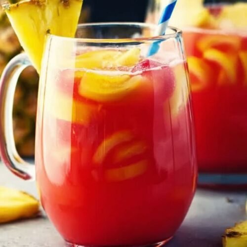 - Made with simple ingredients like pineapple juice, orange juice, and fruit punch.