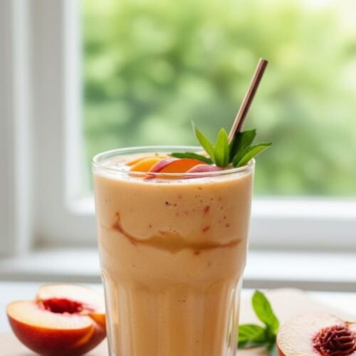 This recipe was born from a kitchen emergency. A fruit fly intervention, you might say. I had a pile of peaches sitting on the counter, looking at me with that “use us or lose us” stare they get right before they turn. You know the one. I couldn’t let them go to waste, but I also didn’t want just any smoothie.