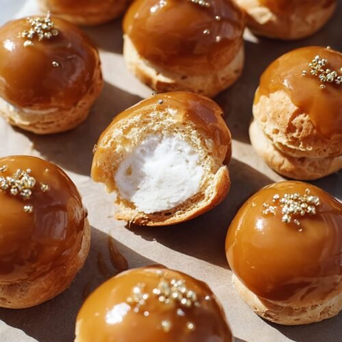 I’ve always believed dessert should feel like a reward, and these Salted Caramel Profiteroles deliver that with a wink and a drizzle. They’re the kind of treat that gets people leaning forward in their chairs, eyes wide, forks ready. The crisp choux shells filled with soft whipped cream? They’re a cloud with attitude, and that golden caramel—with just enough salt to make it interesting—doesn’t play around. This is one of those dessert recipes that make you look like a pastry genius, even if you totally forgot to buy eggs last week. It’s indulgent but doable, a little messy in the best way, and perfect for anyone craving something beyond the usual cake or cookies. If you’ve tried caramel apple dump cake or toyed with caramel apple drinks alcohol recipes, this one is your next delicious step. Whether you’re collecting easy dessert recipes for summer dessert recipes season or just want fresh dessert ideas to make your guests gasp, this one’s for you. Trust me, you’ll want to bookmark this under ‘recipes for dessert worth repeating.’