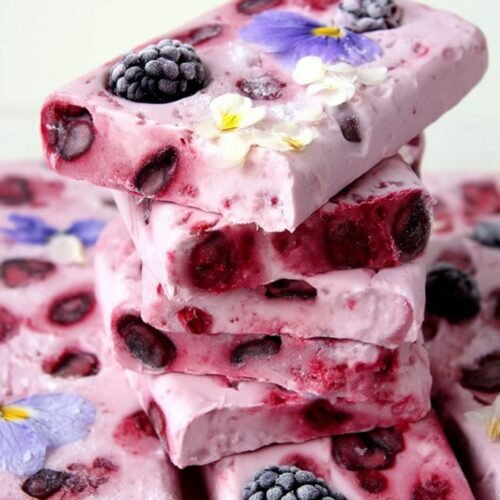 - Once frozen, lift out of the pan using the parchment and slice into bars. Let sit at room temp for 5 minutes before biting in.