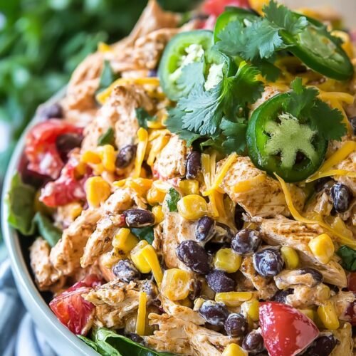 When the weather gets warm, I crave meals that are light, quick, and still pack a punch of flavor. This Zesty Southwest Chicken Salad checks all those boxes. It’s a summer recipes classic that we keep coming back to in my house—whether for lunch on the patio or a casual dinner after a long day. The base is simple: grilled chicken, black beans, corn, and a zippy dressing that wakes up your tastebuds faster than your morning espresso. I like mine with a heap of crunchy romaine and a generous handful of tortilla strips. My partner? He loads his with extra avocado. Either way, it’s a choose-your-own-adventure kind of dish. It falls right in line with what I love about summer salad recipes—it’s flexible, fast, and tastes even better the next day. You can easily turn this into one of your go-to summer pasta salad recipes by tossing in some al dente rotini. Or keep it lean and green for a high-protein chicken salad recipe that’s every bit as satisfying. Whether you’re planning summer chicken recipes dinners or just want ideas for summer chicken breast recipes that don’t feel like the same old thing, this one delivers.